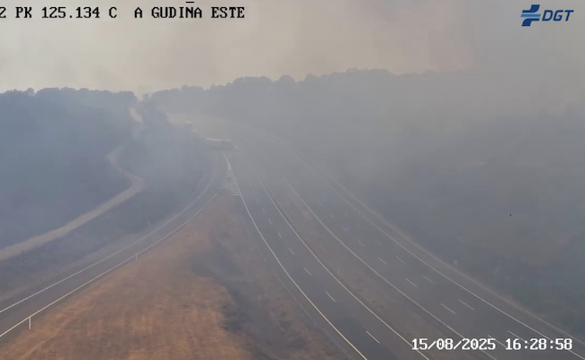 Los incendios forestales de Orense, con el de A Mezquita afectando a la comarca de Sanabria, han obligado este viernes a cortar la autovía A-52 en varios tramos. El tráfico permanece interrumpido entre los puntos kilométricos 111 y 127 en ambos sentidos dentro de la provincia de Orense y, en Zamora, a la altura de Lubián, en el punto km 103 en sentido creciente.
