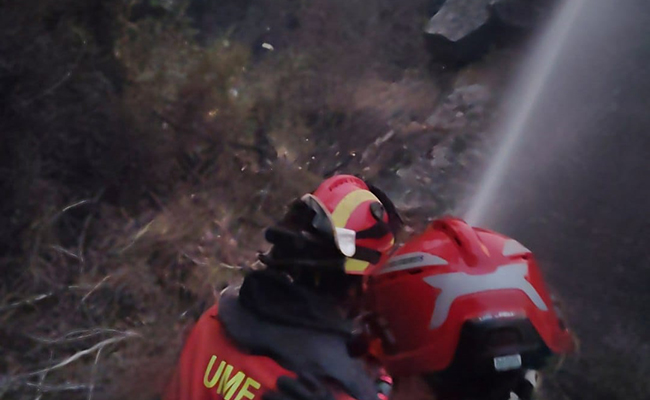 Los trabajos de extinción se han centrado en asegurar el perímetro, que en algunas zonas es complicado.