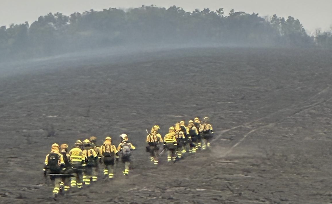Desplegados en la zona bomberos forestales de las BRIF de Lubia, Pinofranqueado, Laza y La Iglesuela del Tiétar, junto con bomberos alemanes, medios aéreos, de la UME y maquinaria pesada.