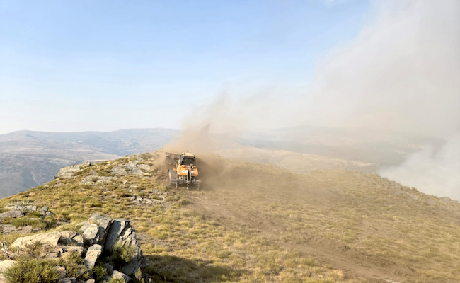 Fotografía: Buldócer, trabajando en el incendio de Porto (realizada por la BRIF de la Iglesuela del Tiétar).