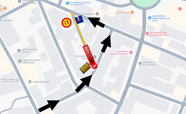 Adicionalmente, será necesario realizar un corte parcial en la Travesía Dr. Olivares a partir del próximo miércoles 1 de octubre, con una finalización prevista para el 10 de octubre. El acceso a los garajes en esta zona se mantendrá a través de la calle Dr. Olivares, como se muestra a continuación.
