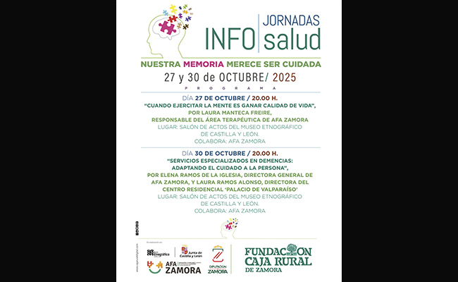 AFA Zamora volverá a participar activamente en las Jornadas INFOsalud, organizadas por Fundación Caja Rural de Zamora, con dos ponencias centradas en el abordaje integral de las demencias y la importancia de la atención especializada.