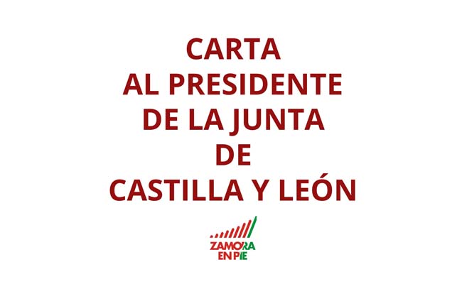 Carta urgente enviada por Zamora en Pie al Presidente de la Junta de Castilla y León