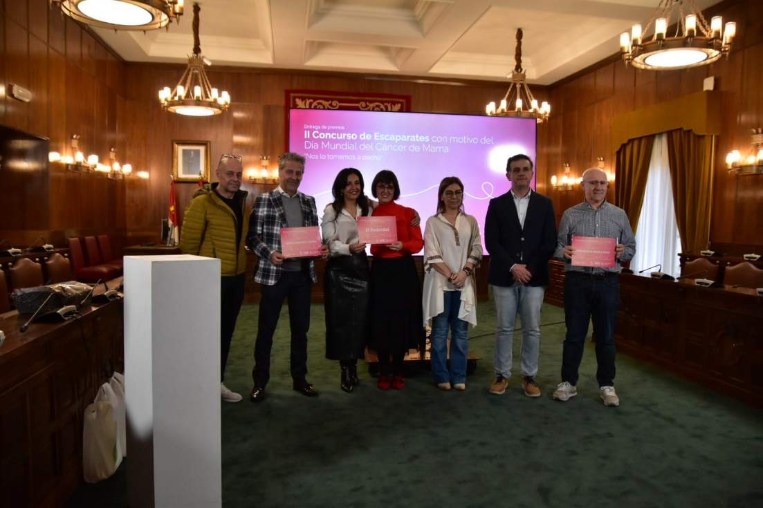Esta mañana ha tenido lugar el acto de entrega de los premios del II Concurso de Escaparates "Nos lo tomamos a pecho", promovido por la Asociación Española Contra el Cáncer (AECC) con motivo de la celebración del Día Mundial contra el Cáncer de Mama, en colaboración con la Diputación Provincial y la Asociación Zamorana de Empresarios del Comercio (AZECO).