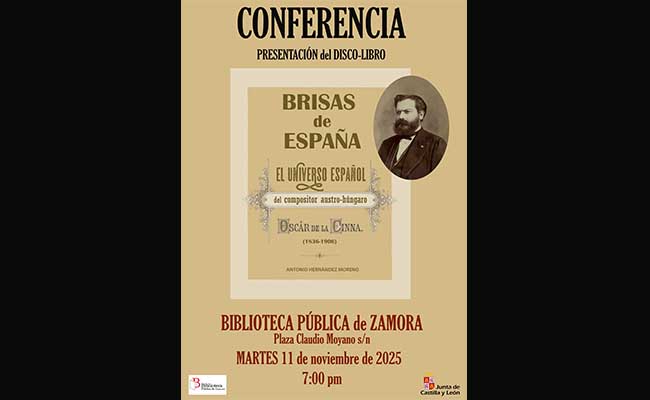 El próximo martes, 11 de noviembre, a las 19.00 horas, tendrá lugar en la Biblioteca Pública de Zamora la Conferencia presentación del libro "Brisas de España".