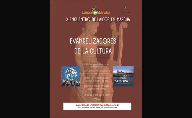 El proyecto Laicos en Marcha (LeM), impulsado por el Instituto Secular Cruzados de Santa María, convoca la décima edición de su Encuentro Nacional los próximos días 8 y 9 de noviembre de 2025 en la ciudad de Zamora. Este año el lema que inspira la cita es «Evangelizadores de la Cultura», con la intención de subrayar cómo la fe cristiana puede y debe incidir en los distintos ámbitos de la vida social, cultural y profesional.