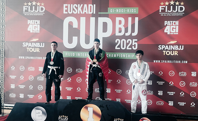 Hugo Domínguez, perteneciente al gimnasio Martial Arts School Ju75 del Team Cadena Spain, ha participado este fin de semana en Vitoria en la Copa de Euskadi de 2025 de Brazilian Jiu Jitsu en la categoría juvenil de hasta 67 kg.