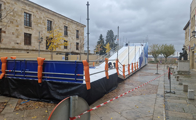 Esta mañana ha comenzado la instalación del gran tobogán de hielo, que ya triunfó en Zamora durante las pasadas Navidades.