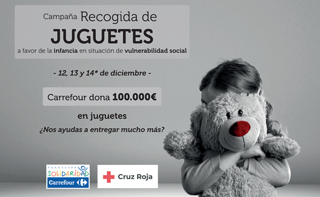 Se trata de una campaña solidaria de recogida de juguetes desarrollada por Fundación Solidaridad Carrefour junto a Cruz Roja y Cruz Roja Juventud que tendrá lugar del 12 al 14 diciembre en 203 hipermercados de la compañía