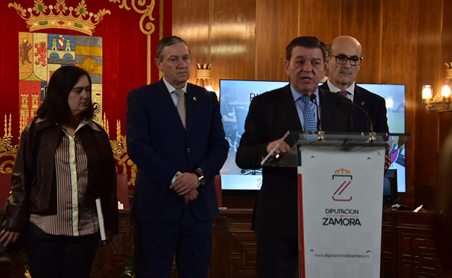 Esta mañana el consejero de la Presidencia de la Junta de Castilla y León, Luis Miguel González Gago, y el presidente de la Diputación de Zamora, Javier Faúndez Domínguez han firmado el convenio de adhesión al Plan de Expansión Rural del 012 en la provincia, en un acto celebrado en la Institución Provincial.
