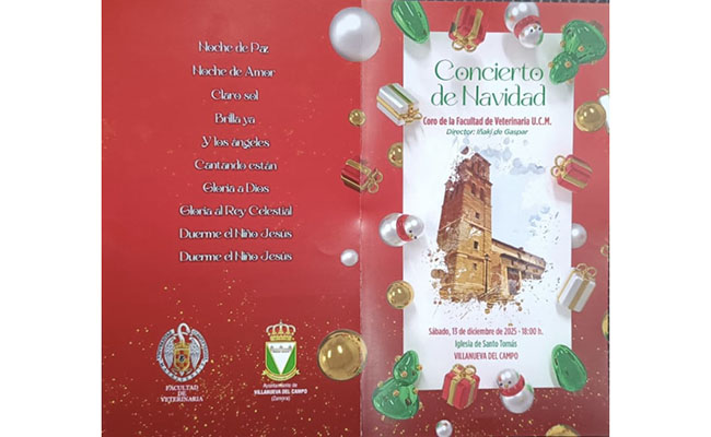Hoy, sábado, 13 de diciembre, encuadrado en el Programa Cultural de Navidad que se desarrolla en Villanueva del Campo, tendrá lugar un Concierto de Villancicos interpretados por el Coro de la Facultad de Veterinaria de la Universidad Complutense Madrid.
