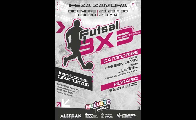 La Institución Ferial de Zamora (IFEZA) será el escenario del Torneo Futsal 3x3 “Muévete en IFEZA”, una actividad deportiva dirigida a niños y jóvenes que se desarrollará durante las vacaciones de Navidad, concretamente los días 28, 29 y 30 de diciembre y 2, 3 y 4 de enero.