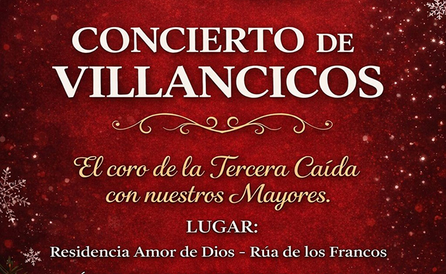 La Hermandad comunica la iniciativa que el Coro ha propuesto de ayuda y preocupación por nuestros mayores; por ello realizarán este sábado, 27 de diciembre, a las 11 horas, un concierto de villancicos en la Residencia Amor de Dios, en la rúa de los Notarios.