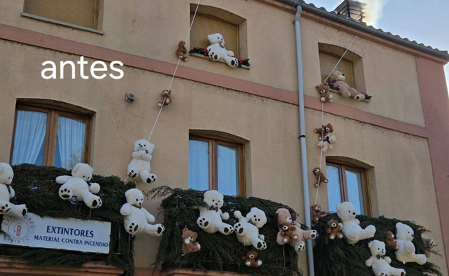 La fachada de Extintores Viriato, recientemente decorada con motivos festivos para el disfrute de vecinos y transeúntes, ha sido objeto de un acto vandálico durante la noche. Una persona no identificada accedió al edificio y sustrajo varias figuras decorativas con forma de oso: una de gran tamaño y al menos tres más pequeñas, una de ellas retirada desde una ventana situada en Plaza de los Carros.