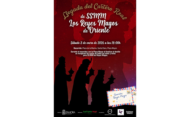 Una de las novedades para la Navidad zamorana de este año es la visita del Cartero Real de Sus Majestades, que recorrerá Zamora el sábado 3 de enero a partir de las 18 horas, desde la plaza de la Marina hasta la Plaza Mayor, acompañado de la Banda de Cornetas y Tambores, recogiendo las cartas de todos los zamoranos y zamoranas, para hacérselas llegar a los Reyes Magos.
