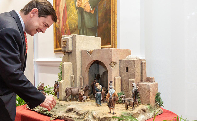 La 'Adoración por los Reyes Magos y Anunciación a los pastores' de la Agrupación Belenista 'La Morana', en la sede de la Presidencia de la Junta