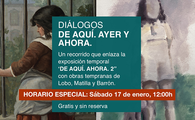 Esta semana nuestra visita guiada tendrá lugar el sábado 17 de enero a las 12:00h. El recorrido DIÁLOGOS DE AQUÍ. AYER Y AHORA nos traslada desde obras tempranas de Nicanora Matilla, Eduardo Barrón o Baltasar Lobo, hasta la muestra temporal “De aquí. Ahora. 2. Zamora” que también exhibe propuestas creativas, pero actuales, de artistas jóvenes en etapa formativa.