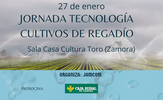 Las novedades de la PAC y del programa 'Sativum' del Itacyl y el uso de drones en la agricultura protagonizarán la jornada 'Tecnología en cultivos de regadío', que JamCom organiza el 27 de enero en Toro (Zamora) por la mañana, con la colaboración de la Comunidades de Regantes (CCRR) zamoranas de Virgen del Aviso y San Frontis y el patrocinio de Caja Rural de Zamora.