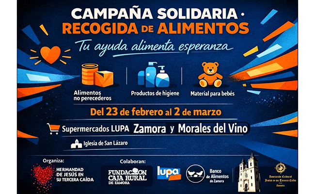 Este proyecto, nacido desde la Hermandad y siendo ya su tercera edición, no sería posible sin la colaboración de: Banco de Alimentos de Zamora, Parroquia de San Lázaro, Supermercado LUPA y Caja Rural de Zamora, a través de su Fundación.