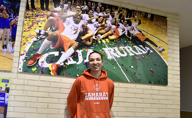 Eva Carregosa es una de las jóvenes jugadoras que llegaron al Zamarat en el inicio de temporada. Esta jugadora portuguesa, de 23 años, se unió al equipo tras una buena temporada con el Barça CBS, que la convirtió en una joven promesa que ya está demostrando su talento y su carácter cada jornada con el Zamarat.
