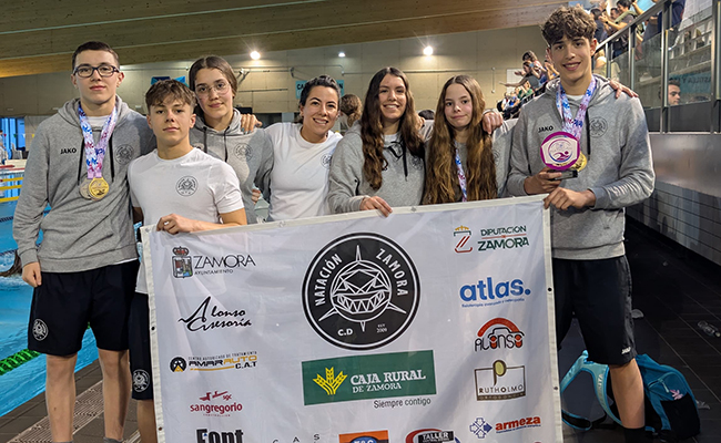 El Club Deportivo Natación Zamora ha vuelto a demostrar que la calidad prima sobre la cantidad. En el reciente Campeonato de Castilla y León Infantil de Invierno, la expedición zamorana, compuesta por apenas seis nadadores, logró una heroica octava posición en la clasificación general, compitiendo de tú a tú contra clubes con plantillas mucho más numerosas gracias a una impresionante cosecha de metales, 17 en total.