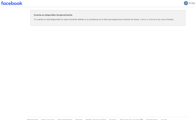 La red social Facebook está sufriendo una interrupción generalizada de su servicio, impidiendo a millones de personas iniciar sesión, actualizar el feed o publicar contenido.