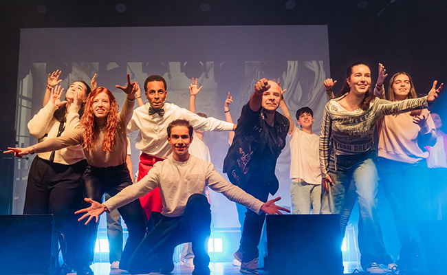 La propuesta escénica combina interpretación, música, baile, proyecciones, escenografía y banda sonora en directo, con una factura ágil y coral. El equipo está integrado por alrededor de una treintena de personas entre actores, cantantes, músicos, bailarines y personal técnico, con presencia mayoritaria de jóvenes.