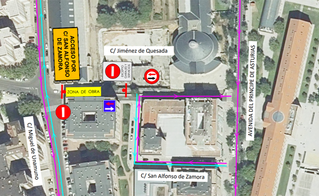 Durante este período, el tráfico de vehículos se verá alterado por esta circunstancia. El acceso a servicios y garajes de la zona deberá realizarse a través de la calle San Alfonso de Zamora.
