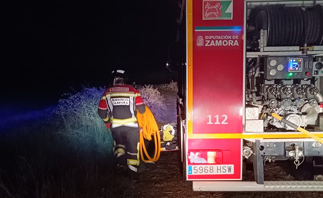 Una dotación de bomberos del Parque Zona Sur del Consorcio Provincial de Prevención y Extinción de Incendios, Salvamentos y Protección Civil de la Diputación de Zamora, con base en Bermillo de Sayago, intervino en la noche de ayer en la extinción de un incendio de pasto declarado en el paraje de Las Enillas.