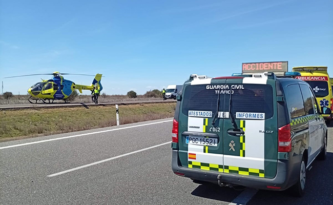 Un helicóptero medicalizado aterrizó en plena autovía A-6 (Madrid – A Coruña), cerca de Benavente (Zamora), para evacuar a dos personas heridas graves