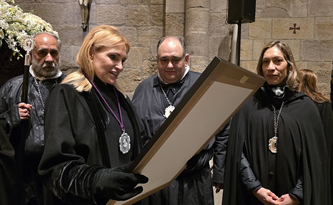 Así, uno de los momentos más destacados de la madrugada del Viernes Santo ha sido la imposición a Arteta de la medalla de Dama de la Virgen de la Soledad, un reconocimiento simbólico, con el que la cofradía distingue tanto su trayectoria artística como su implicación personal. Con este gesto, la hermandad ha querido reconocer “no solo su brillante trayectoria artística, sino también su calidad humana y su deseo de vivir esta noche como una mujer más junto a la Virgen”. La soprano recibió además un cuadro con la imagen titular, en un acto cargado de emoción, que se incorpora, desde ahora, a la tradición zamorana.