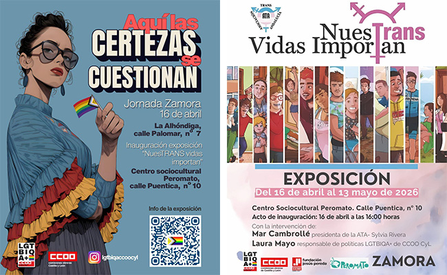 También ese día tendrá lugar la Inauguración de la Exposición "NuesTRANS Vidas Importan", en el Centro Socio-Cultural Peromato en la C/ Puentica, 10 de Zamora, entre el 16 de Abril y 13 de mayo del 2026.