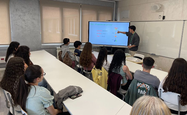 Durante las sesiones, el alumnado pudo conocer de una manera accesible y cercana qué es el cáncer, cómo se desarrolla la enfermedad y cuál es el papel fundamental que desempeña la investigación científica en su prevención, diagnóstico y tratamiento. Además, Pablo Miñambres explicó su propio proyecto de investigación en cáncer de mama, acercando al alumnado la realidad del trabajo investigador y poniendo en valor la importancia del compromiso científico y social desde edades tempranas.