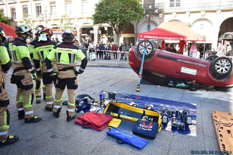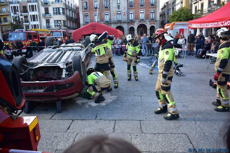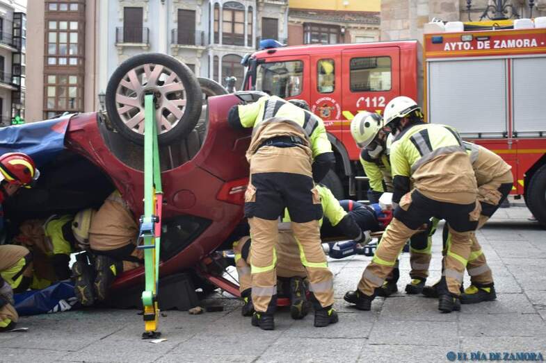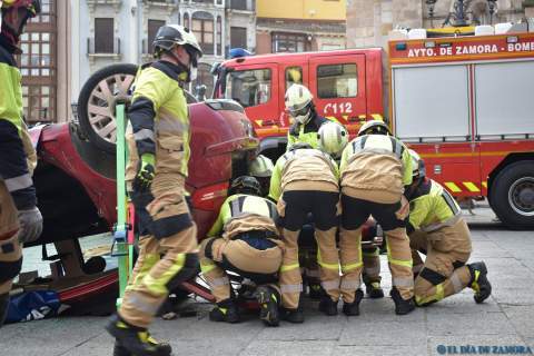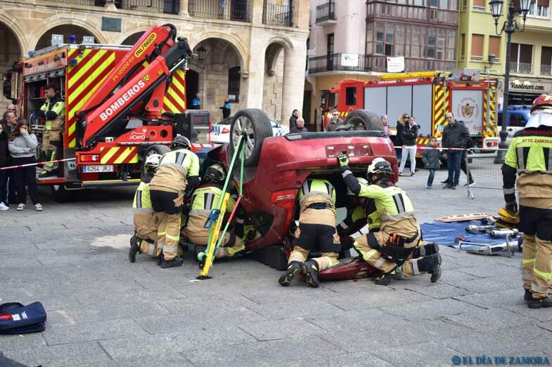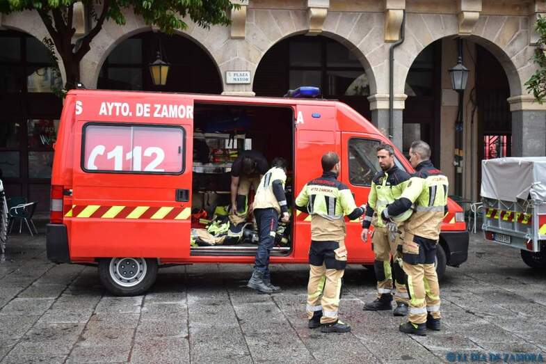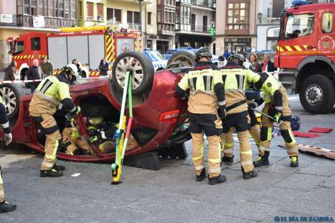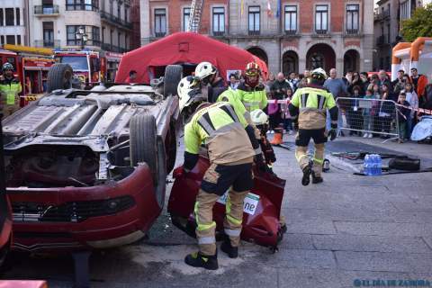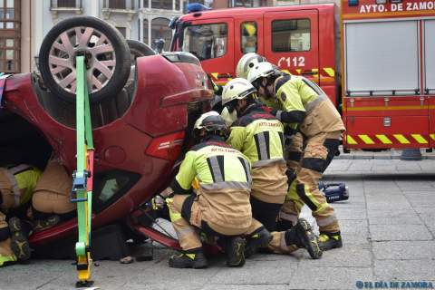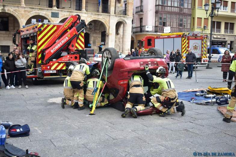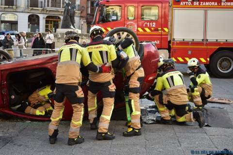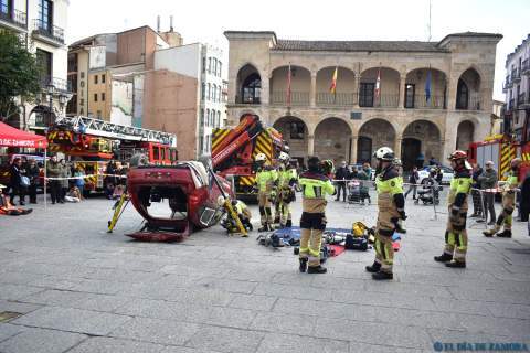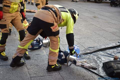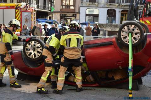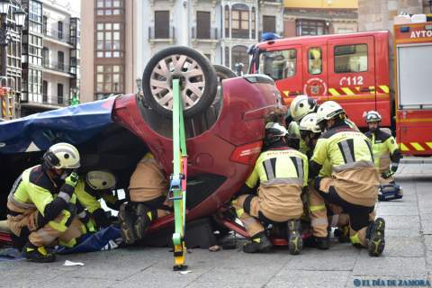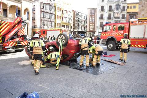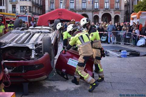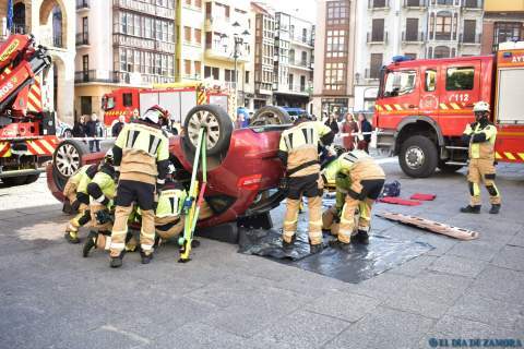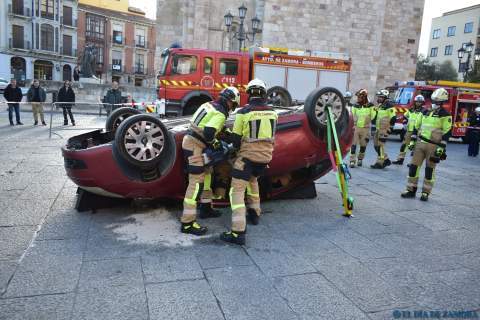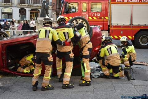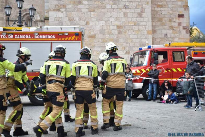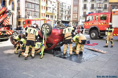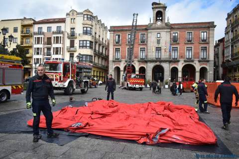 Exhibición de los bomberos en la Plaza Mayor