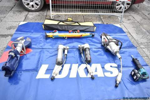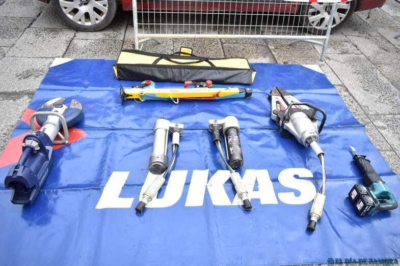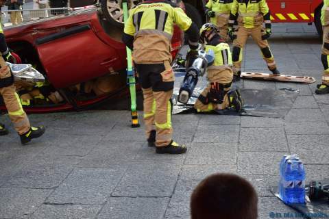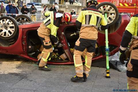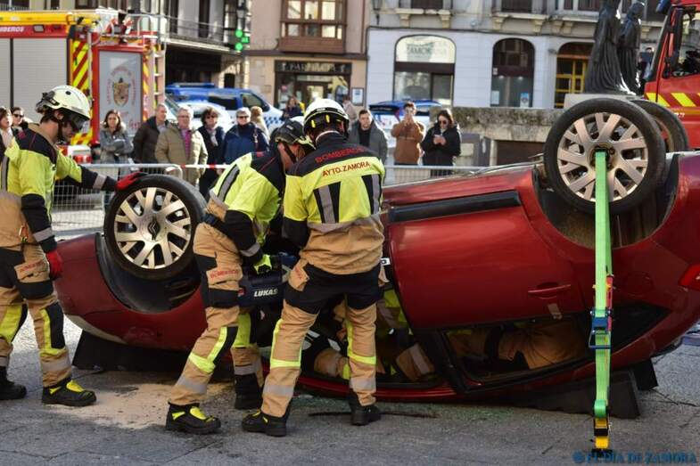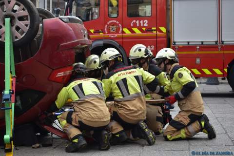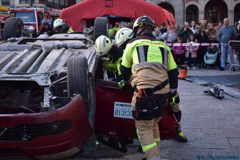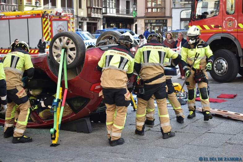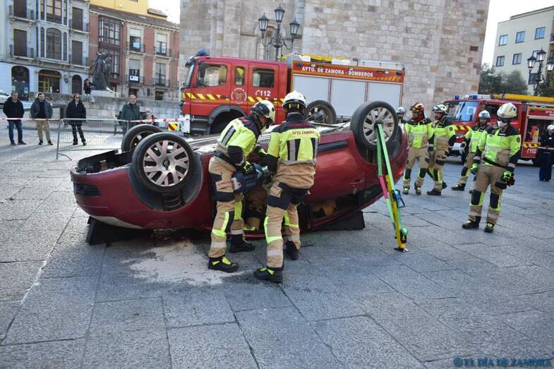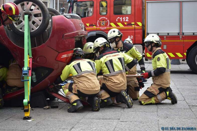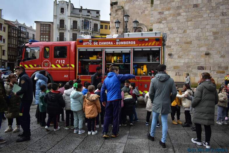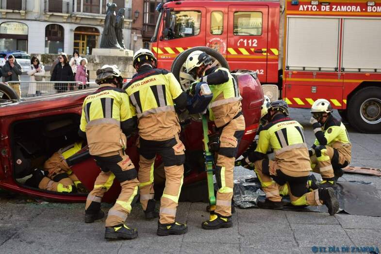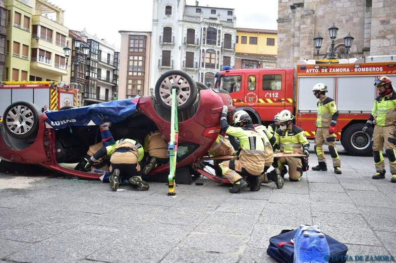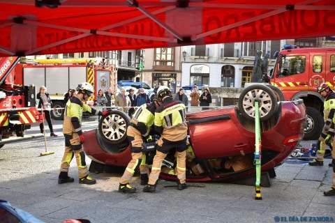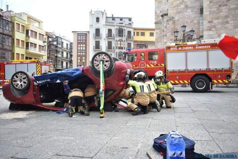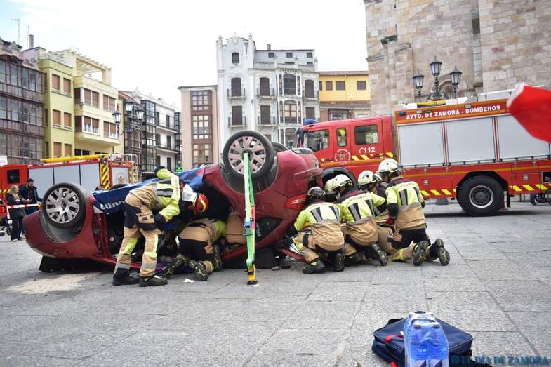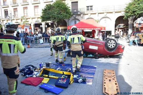 Exhibición de los bomberos en la Plaza Mayor